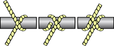 A useful knot to start lashings with, the clove hitch is another ancient way of tying off a rope. It is best as a crossing knot rather than to secure loads. The two ends can be adjusted to reposition the knot.