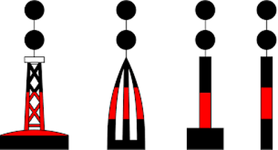 These marks are used to define routes and channels in waterways such as harbours or estuaries and marked from a seaward direction. Vessels should keep port marks to the left and starboard marks to the right.