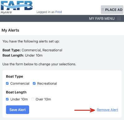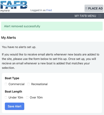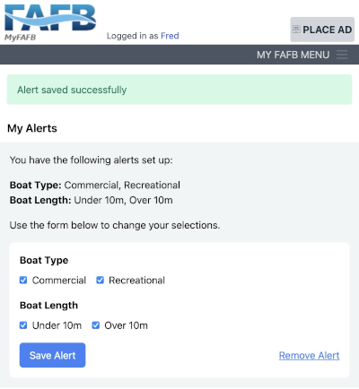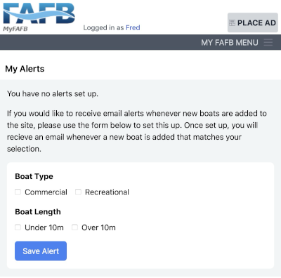 If you're looking for a boat on FAFB, you can now set up an alert that will send you an email (no more than once a day) when new boats are listed that match your alert profile.