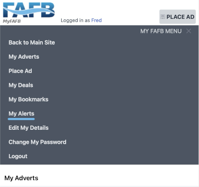 After logging in to your FAFB account, you will see a new My Alerts option on the MyFAFB menu