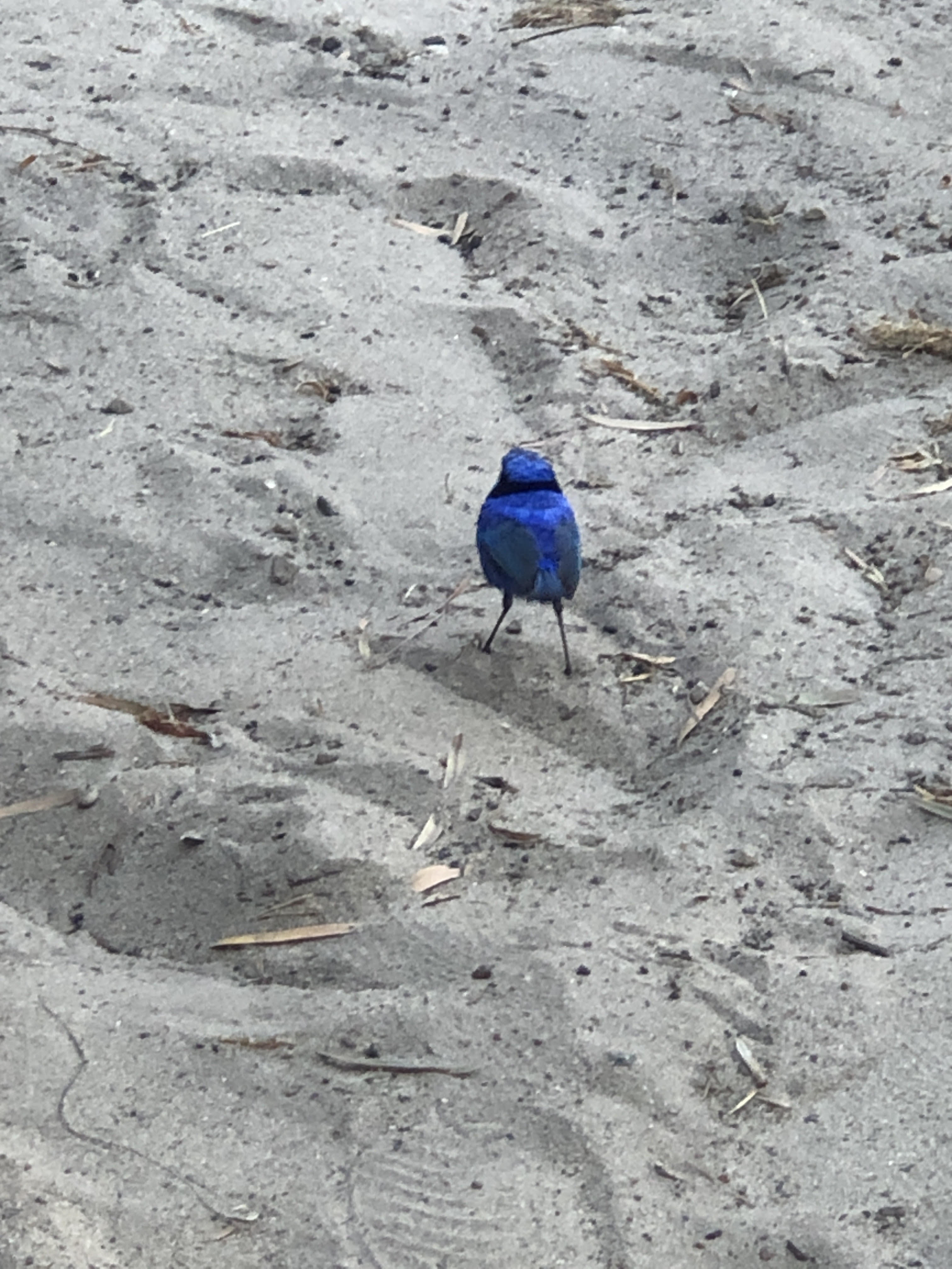 The bird is a blue fairy wren a-bit bigger than a matchbox