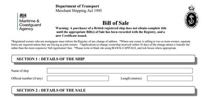Lastly, when you commit to buying a boat, make sure that you complete the legal transfer of ownership using a Bill of Sale. Issued by the Maritime and Coastguard Agency, the transfer of ownership is not complete until it has been recorded with the Registry of Shipping and Seamen and a new certificate issued.